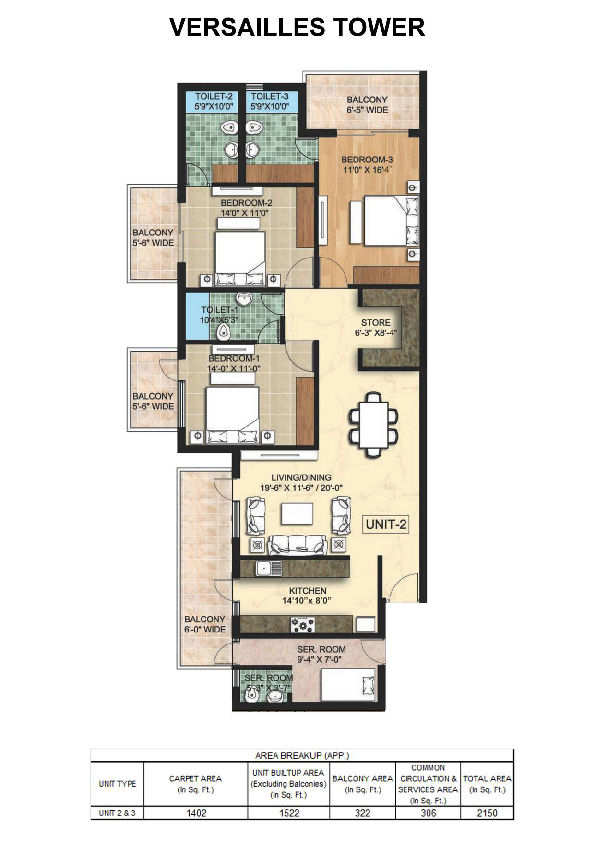1426 Sq.ft. | 2 BHK | 2 Bath(s)